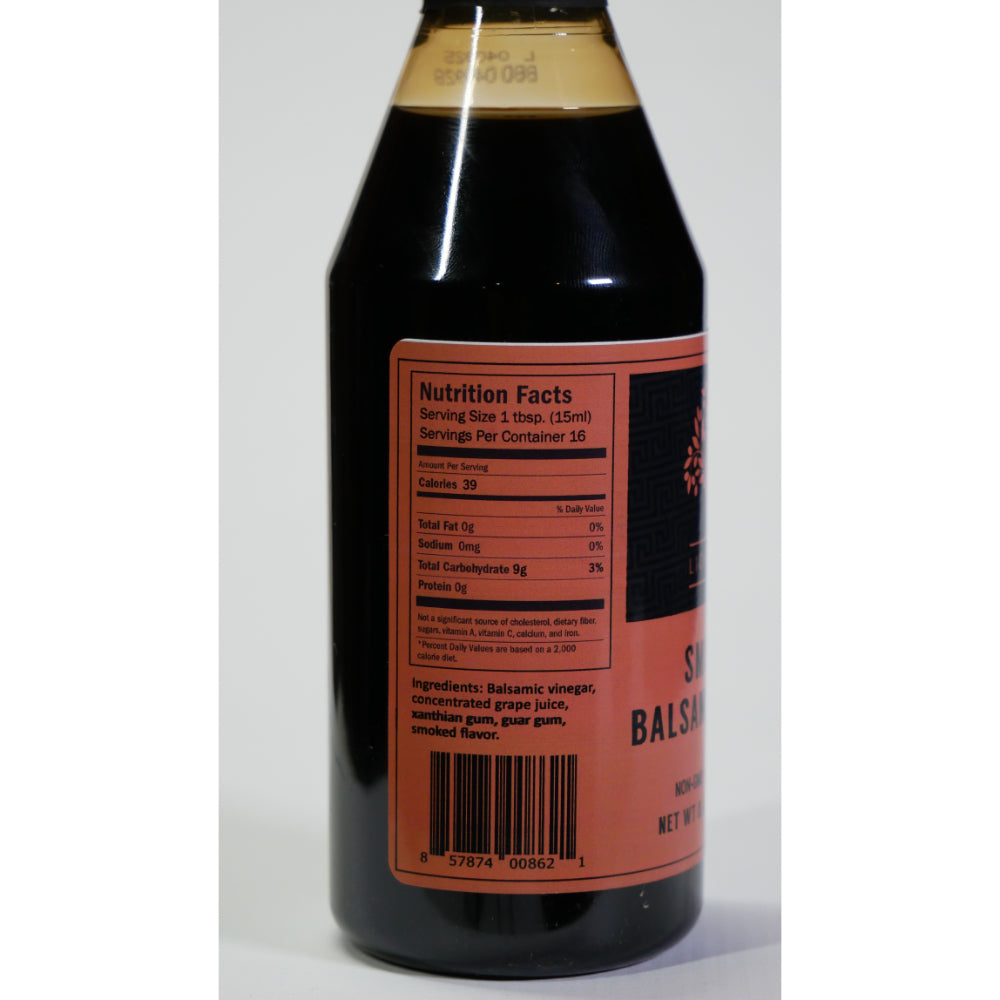 • Ingredients: Balsamic vinegar, concentrated grape juice, xanthian gum, guar gum, smoked flavor